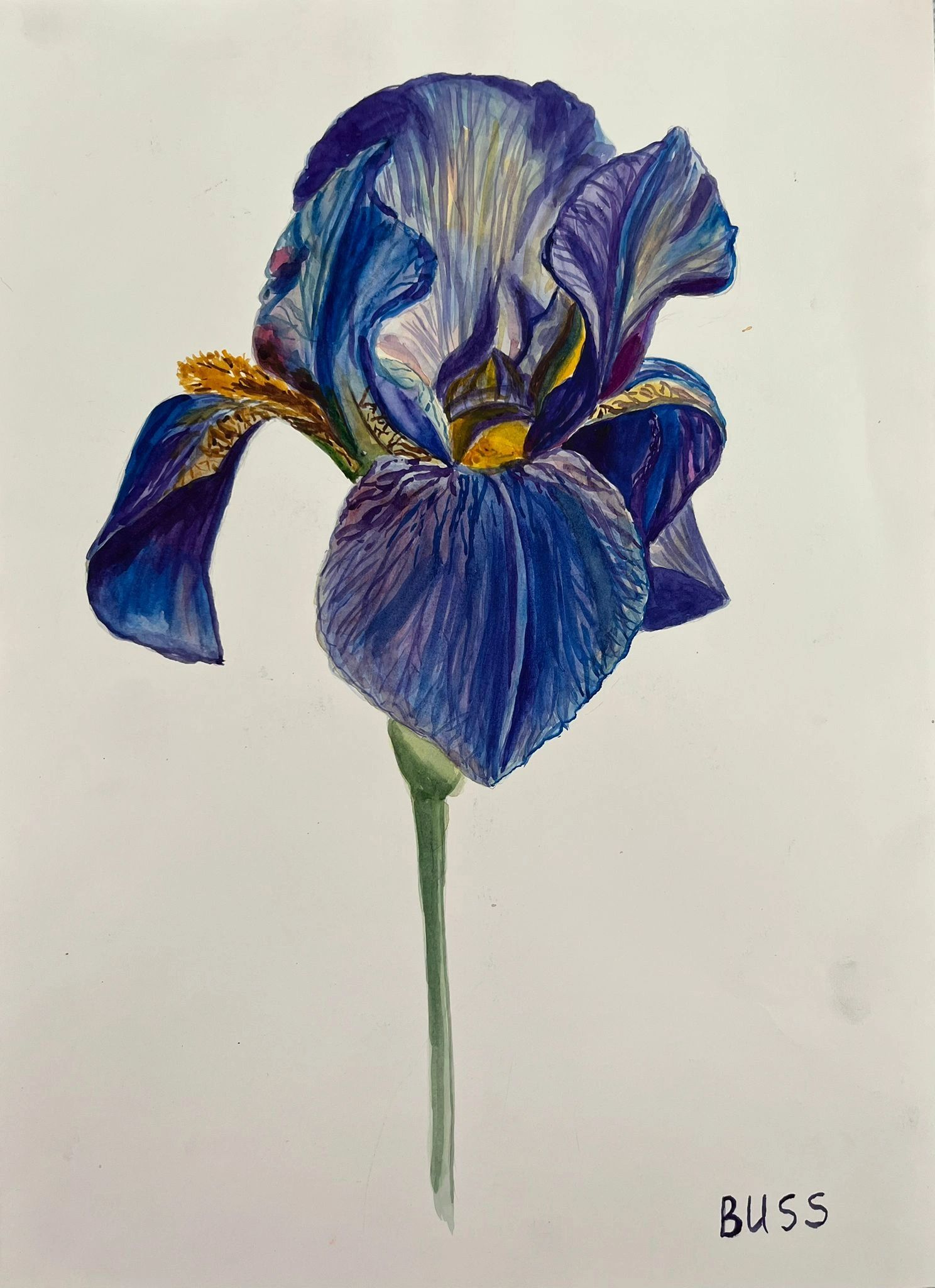 Blue Iris Flower Art with watercolor 11.5X16 inches